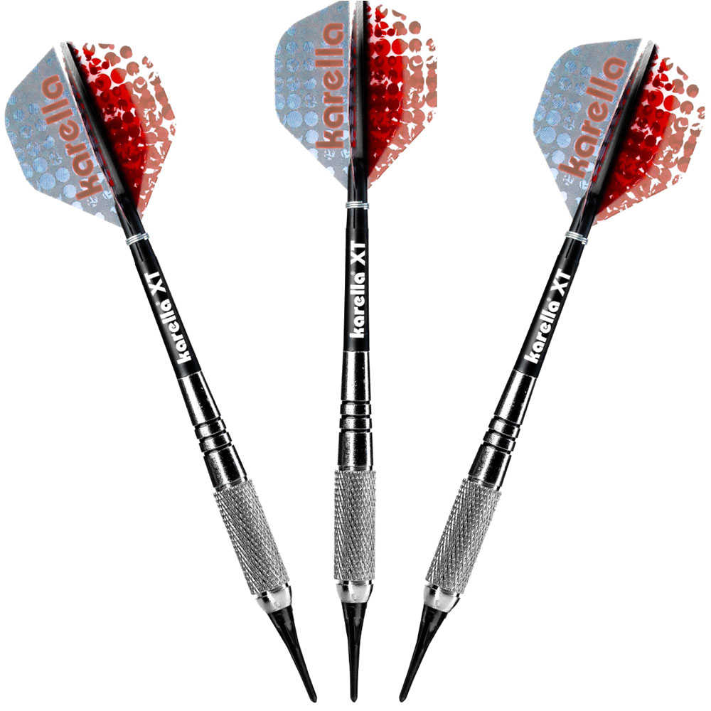 Die Karella XT-Serie als Steel- und Softdart verbindet Design und Qualität bei einem unschlagbaren Preis-Leistungs-Verhältnis. Der Karella XT-5 Soft ist ein elegant verchromter Messingdart mit einem torpedoförmigen Barrel. Durch den leicht angerauten vorderen Bereich hat der Dart einen angenehmen Grip und eignet sich hervorragend für Spieler, die den Dart möglichst weit vorne halten. Die perfekte Gewichtsverteilung ermöglicht eine ideale Flugbahn des Darts und verzeiht leichte Fehler. Der Dart kommt mit Profi Karella XT-Schäften (Medium) und 100 Mic. starken XT-Profi Flights. Verpackt ist das Set in einem schönen Blister inklusive Darthalter. Karella XT Serie – Ideal für Einsteiger und Hobbyspieler.