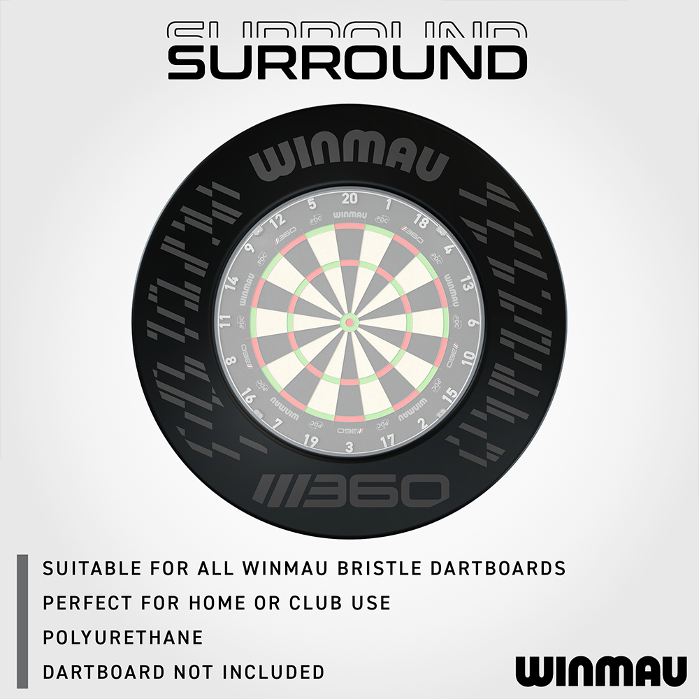 Winmau Blade 360 Black Surround – passend für alle Winmau Sisal-Dartboards und ideal für Zuhause oder Vereine. Mit einem Durchmesser von ca. 68 cm schützt der ca. 3,5 cm dicke Auffangring Wand und Boden zuverlässig, indem er ca. 12 cm rund um das Dartboard abdeckt. Die Darts bleiben sicher stecken und lassen sich leicht entnehmen. Einfach über das Board stülpen – in gewohnter Winmau-Qualität. Der einteilige Catchring ist kompatibel mit jedem herkömmlichen Winmau-Dartboard und muss einfach über das Dartboard gestülpt werden.