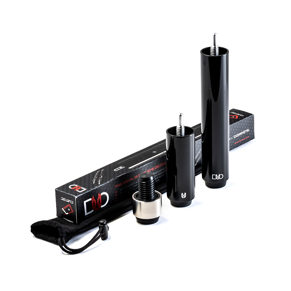 Cuetecs brandneue, komplett aus Verbundwerkstoff bestehende DUO® Smart Extension wurde entworfen und entwickelt, um Spielern eine aussergewöhnliche Positionsreichweite zu bieten. Jede DUO® Smart Extension kann entweder als zwei separate Verlängerungen (3 Inch und 6 Inch) eingesetzt oder kombiniert werden, um eine 9-Inch-Verlängerung für eine bemerkenswerte Reichweite zu schaffen.
