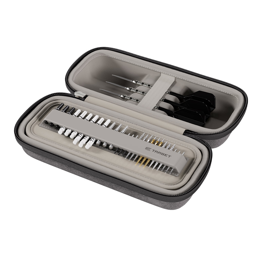 Die Tasche bietet Platz für bis zu 6 vollständig montierte Darts, sodass Sie Ihre Ausrüstung zwischen den Spielen nicht mehr zerlegen müssen. Ein internes Tablettsystem ermöglicht die Aufbewahrung von 12 Dartschäften und 15 Swiss Point-Spitzen, während zusätzliche Fächer Platz für Flights, K-Flex-Zubehör, Swiss Point-Werkzeuge und andere wichtige Utensilien bieten.