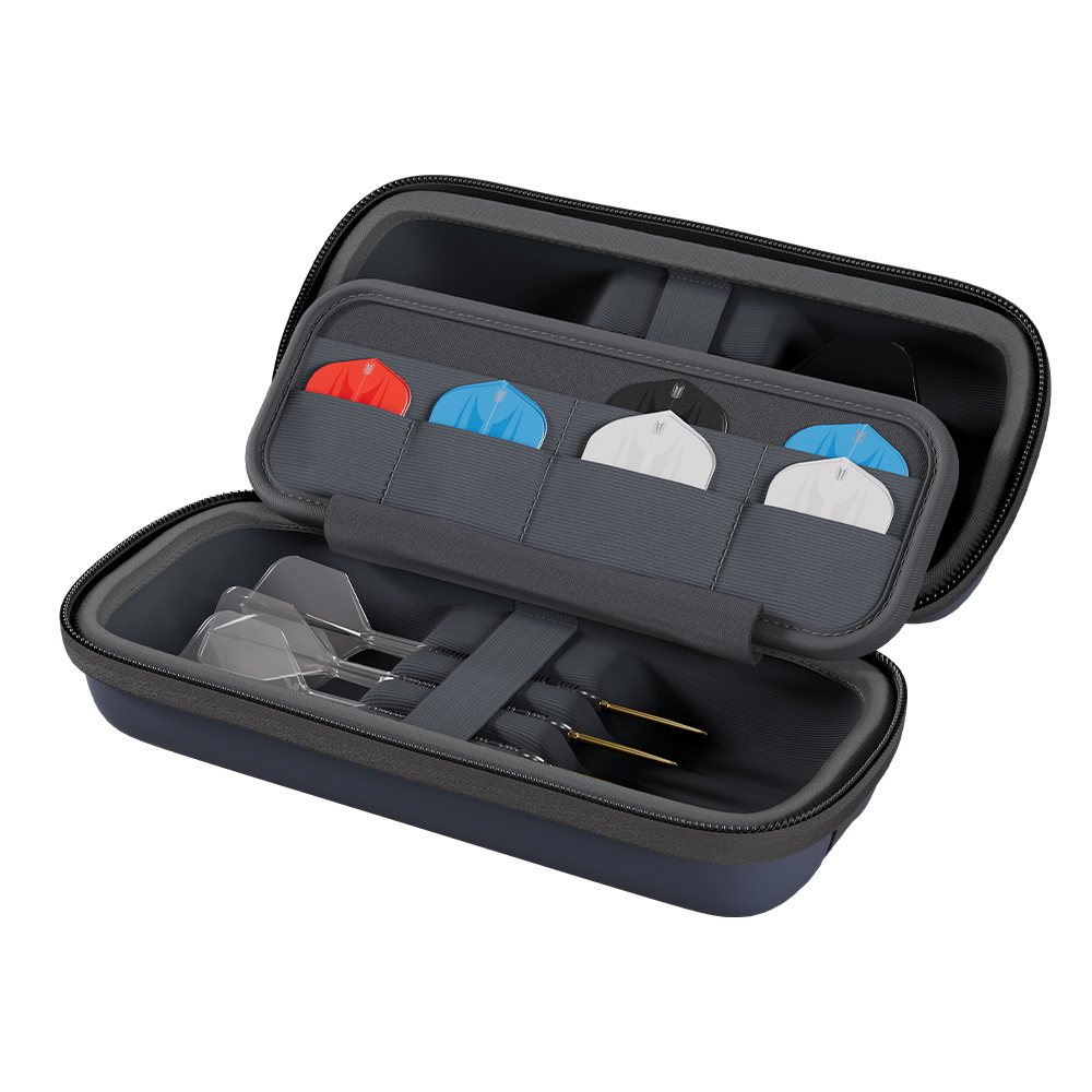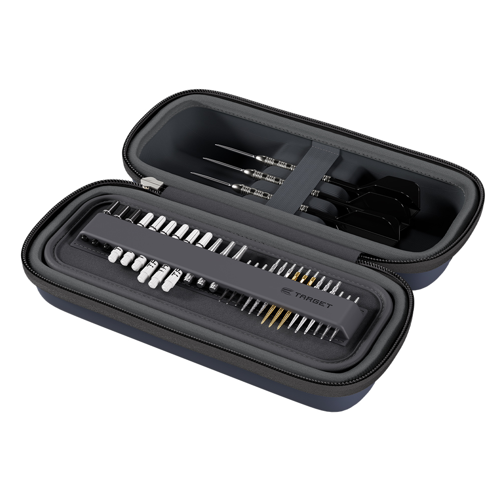 Die Tasche bietet Platz für bis zu 6 vollständig montierte Darts, sodass Sie Ihre Ausrüstung zwischen den Spielen nicht mehr zerlegen müssen. Ein internes Tablettsystem ermöglicht die Aufbewahrung von 12 Dartschäften und 15 Swiss Point-Spitzen, während zusätzliche Fächer Platz für Flights, K-Flex-Zubehör, Swiss Point-Werkzeuge und andere wichtige Utensilien bieten.