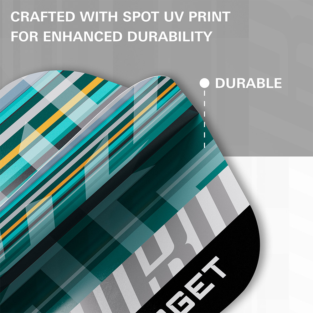 Eine Spot-UV-Beschichtung sorgt für eine subtile strukturierte Oberfläche, verbessert die Griffigkeit am Schaft und erhöht gleichzeitig die Haltbarkeit und Verschleissfestigkeit. Die aus 100-Mikron-Material gefertigten Hydro-Flights bieten zuverlässige Flugstabilität und lang anhaltende Leistung – damit Ihr Setup genauso scharf aussieht, wie es wirft.