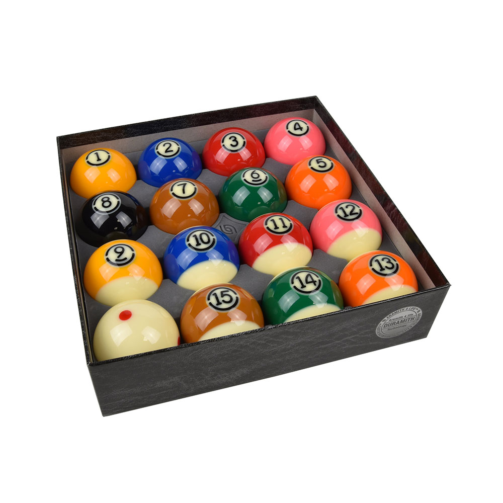 - Perfekter Rückprall : Weitaus wichtiger als die Balltoleranzen sind die Rückpralleigenschaften der Bälle. Nur ein kalkulierbarer Rückprall ermöglicht die strategische Positionierung des Spielballs, um den nachfolgenden Stoss zu optimieren. Die einzigartige Elastizität des Aramith-Phenolharzes ist auf einen optimalen Rückprall ausgelegt, der es dem Spieler ermöglicht, jeden Stoss genau zu steuern.