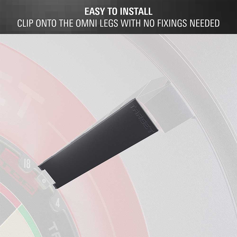 Offizielle Target Darts Omni-Beinschützer, exklusiv für das Omni-Autoscoring-System entwickelt. Diese präzisionsgefertigten Schützer schützen die Beine der 4 Omni-Arme vor abweichenden Darts, verhindern Beschädigungen und verbessern gleichzeitig das Erscheinungsbild Ihrer Einrichtung. Erhältlich in kräftigem Schwarz und Rot, enthält jedes Paket 2 Sets mit je 4 Schützern (insgesamt 8), sodass Sie Ihr Setup vollständig anpassen können. Die Installation ist mühelos: Die Schützer werden einfach auf die Beine geklipst, ohne dass Befestigungen erforderlich sind, und bieten so schnellen Aufbau und zuverlässigen Schutz.
