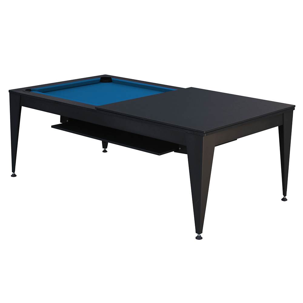 Entdecken Sie mit dem vielseitigen Billardtisch/Esstisch Vancouver eine neue Dimension des Wohnens und Spielens. Dieser moderne Funktionstisch verwandelt sich mühelos von einem eleganten Esstisch, der Platz für bis zu 12 Personen bietet, in einen stilvollen Billardtisch. Dank seines eleganten Designs eignet er sich auch hervorragend als Konferenztisch.