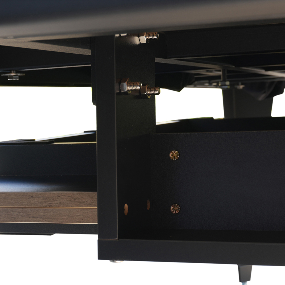 Praktisch integriert: Unter dem Tisch befindet sich eine Ablage, die eine unauffällige Aufbewahrung der Abdeckplatte sowie Ihres Billardzubehöres (Queues, Kugeln, Aufbauhilfen usw.) ermöglicht.