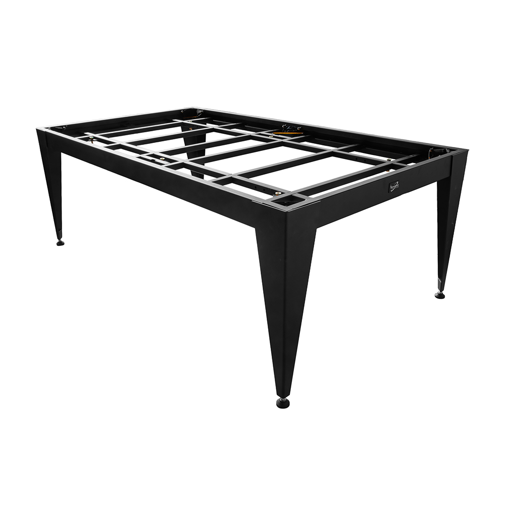 - Die Spielfläche lässt sich durch 6 im Stahlrahmen verankerte Stellschrauben millimetergenau justieren
