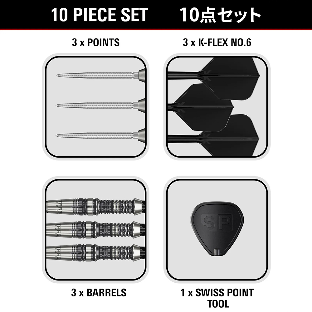 Dieses Set zeichnet sich durch ein einzigartig gestaltetes, kurzes, tropfenförmiges Barrel aus. Der Hauptgriffbereich auf der Rückseite hat einen bewusst verengten Durchmesser, der eine bequeme Vertiefung für die Finger schafft und eine gleichmässige Griffpositionierung bei jedem Wurf gewährleistet.