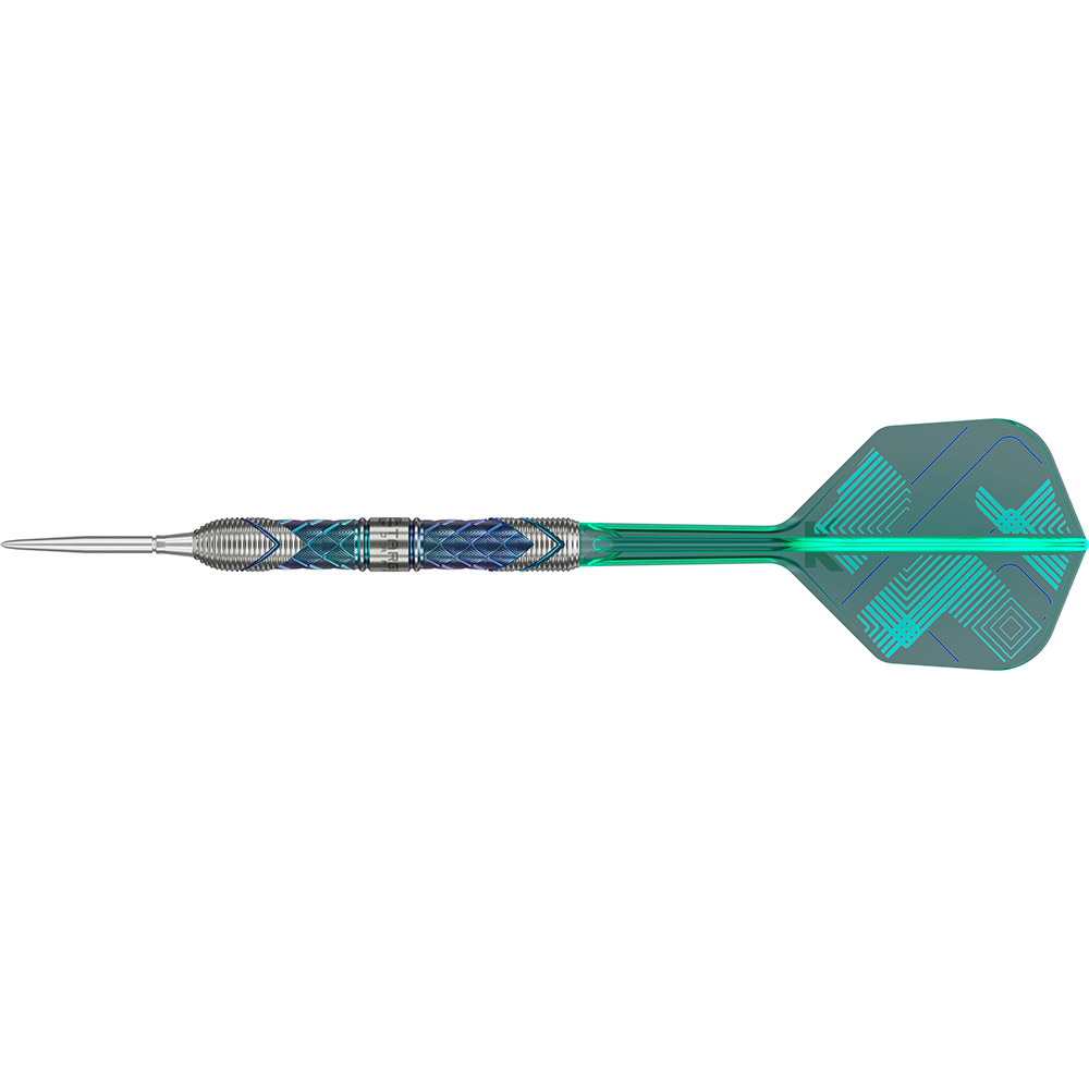 Imposante DLC BLUE-Beschichtung: Verleiht dem Dartset eine luxuriöse Optik und sorgt für faszinierende Lichteffekte.