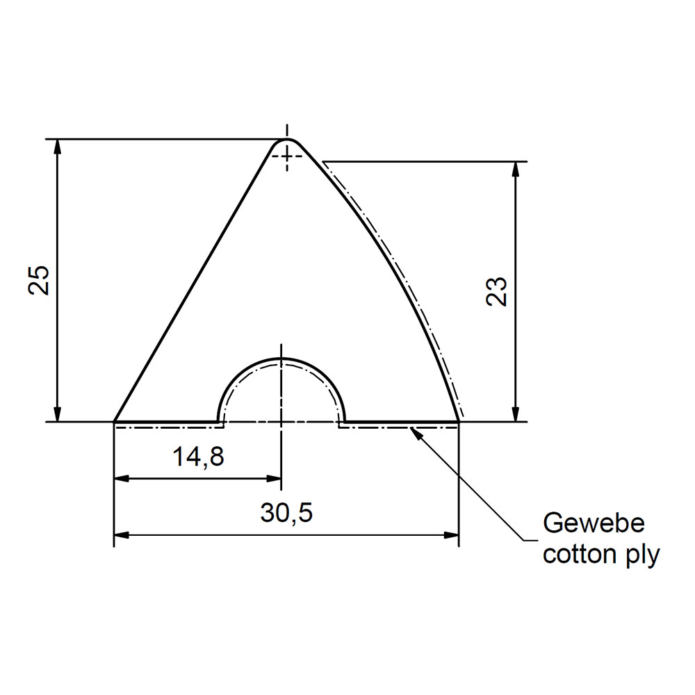 Das gängige Profil für Poolbillard ist das Tournament Profil No. 66. Hierbei beide Schenkelkanten jeweils 30mm – Die Unterseite = Klebeseite hat eine Breite von 30,5mm und mittig eine 10mm breite Nut die gewährleistet, dass die vorgeschriebene Bandenhöhe von 37 mm zum Auftreffpunkt der Poolbälle 57,2mm genau eingehalten wird.