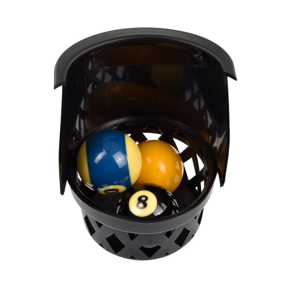 Die 2-tlg. Einfalltasche für Billardtische ist in der Korb-Version aus Kunststoff. Die Universelle Kunststoff Einfalltasche, auch Pocket genannt, eignet sich für Billardtische, die keinen automatischen Ballrücklauf haben. Die Ausführung mit Korbdesign hat eine Gesamthöhe von 17cm. Einen Durchmesser von ca. 13cm, mit einem Fassungsvermögen von 5-6 Kugeln. Der Preis gilt für einen Satz (6 Stk. = 4x Ecktasche + 2x Mitteltasche). Bei dieser zweiteiligen Ausführung wird der untere Auffangkorb in die Eckhalterung eingesteckt.