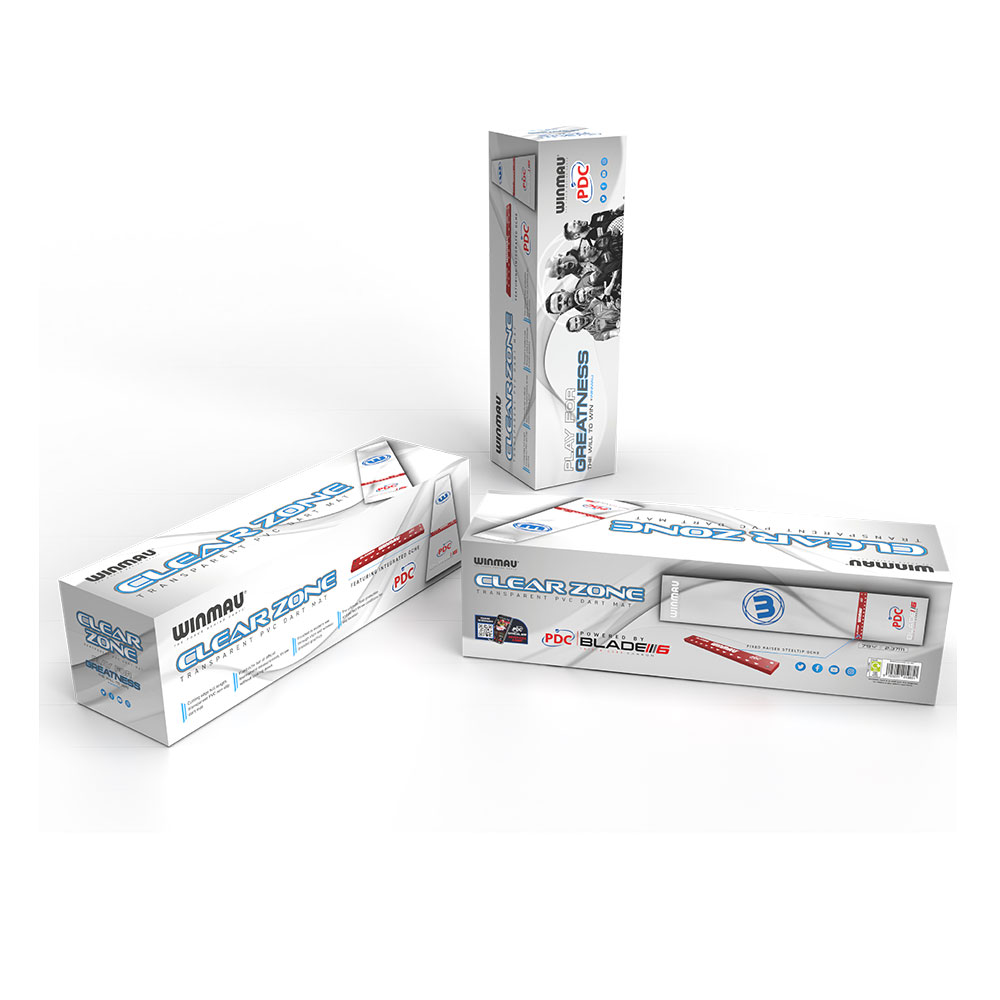 Dank des integrierten Oche können Sie sicher sein, dass Sie immer den gleichen Abstand zur Dartscheibe haben und während Ihres Trainings oder Wettkampfs weiterhin gleichmässig werfen können. Sowohl die transparente Dartmatte als auch das rote Oche sind mit einem Winmau-, PDC- und Blade 6-Logo versehen.