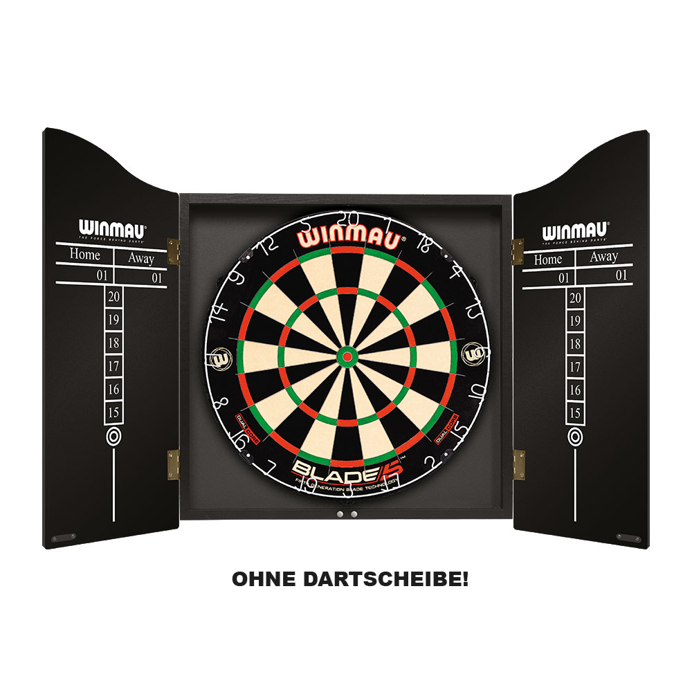 Ein tolles Echtholz-Dartkabinett in Furniereffekt mit aktuellem Man Cave-Design. Türen mit Magnetverschluss. Passend für alle Bristle Dartboards. An der Innenseite der Türen sind leicht zu reinigende Tafeln eingearbeitet, auf welchen die Spielstände notiert werden können. Dartpfeile und Dartboard sind im Lieferumfang nicht enthalten. Komplett mit Montageanleitung.