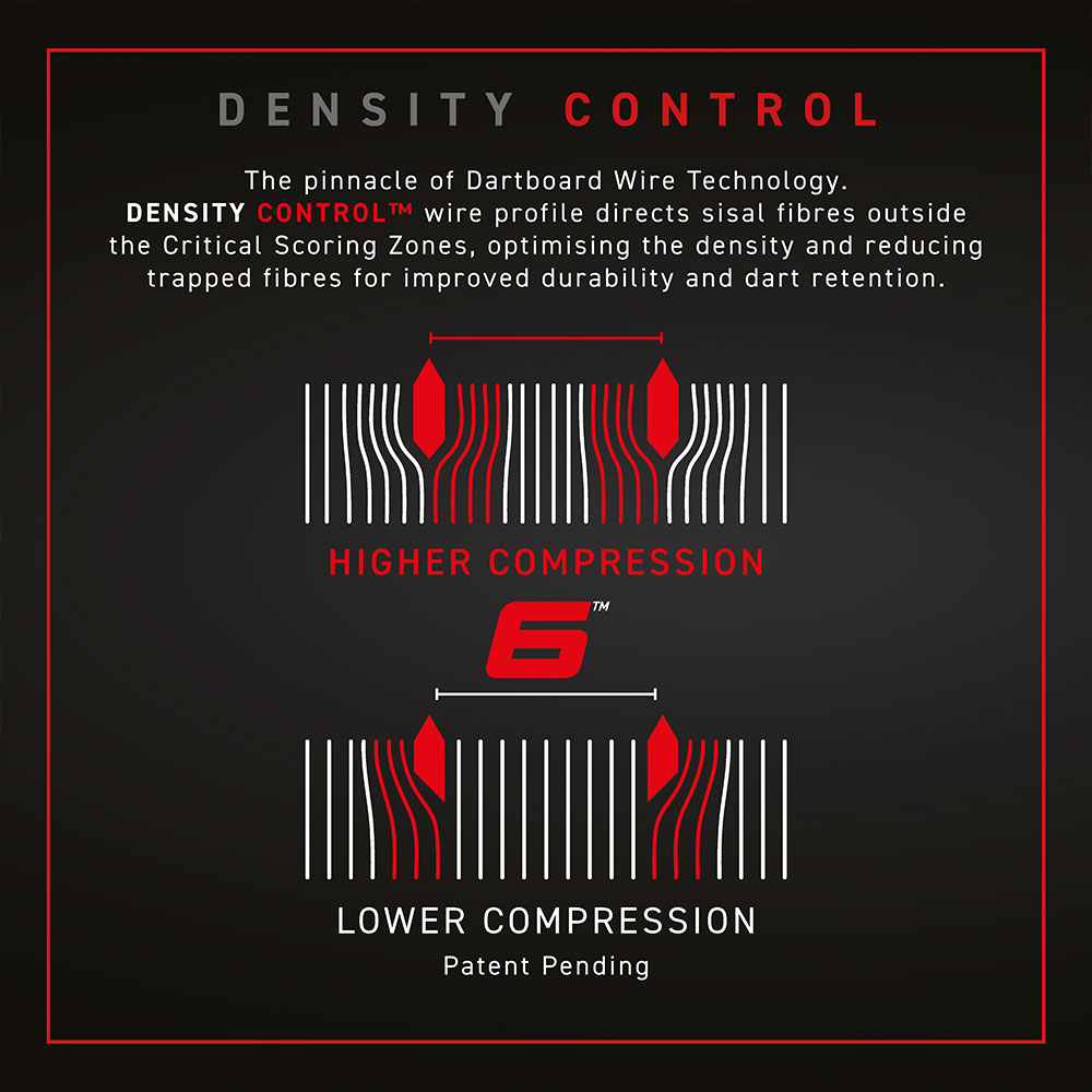 Die wegweisende Verdrahtung des Blade 6 besteht aus dem neuesten Density Control™-Draht, der für eine optimale Faserdichte und einen verbesserten Halt der Darts in den Double-, Triple- und Bullseye-Zonen sorgt.