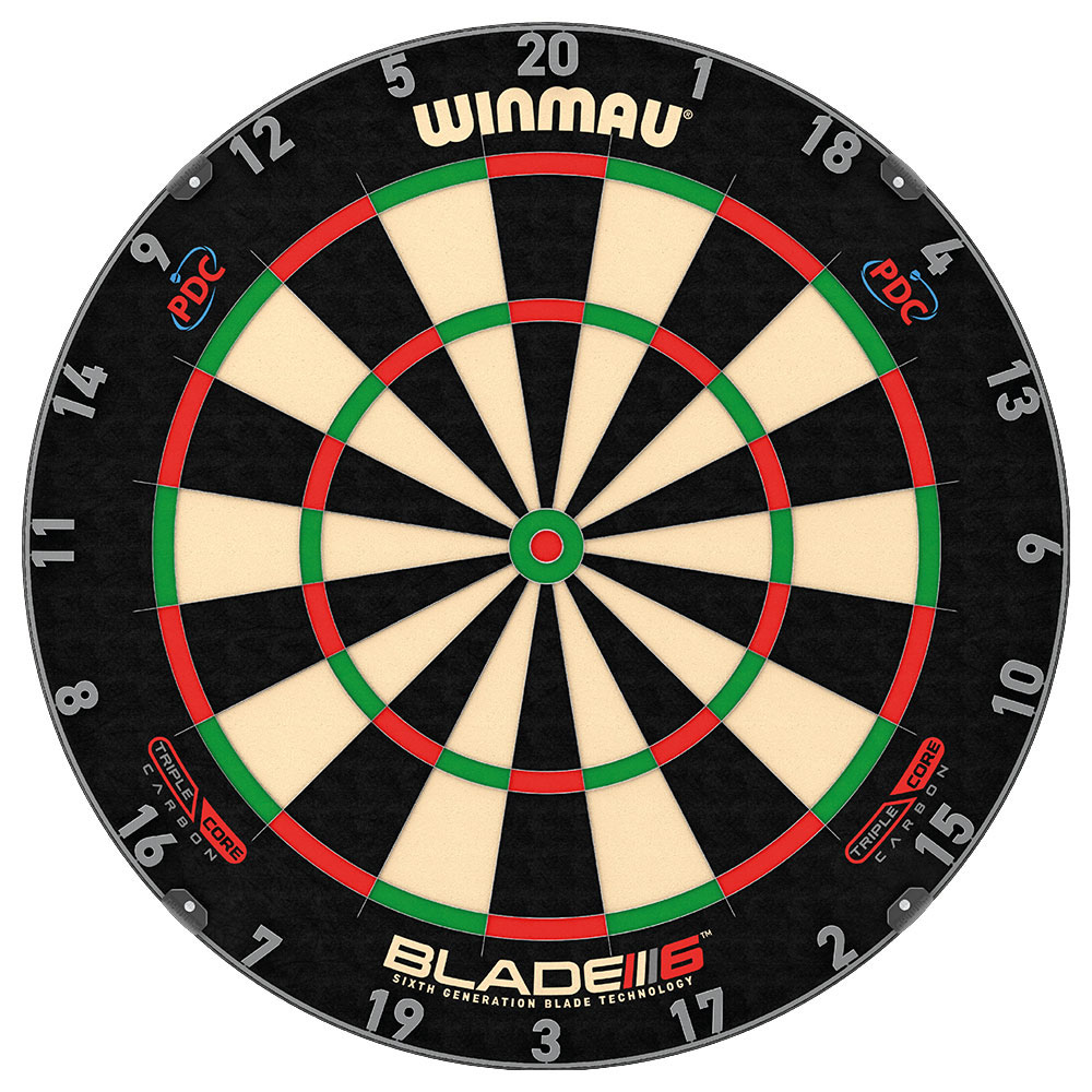 Das offizielle Board der PDC! Die PDC, der bedeutendste Dartverband der Welt mit grösster TV Präsenz spielt ab sofort alle Turniere ausschliesslich auf dem Winmau Blade 6 Triple Core. Die revolutionäre Triple-Core-Technologie ist das Highlight der Blade 6 Serie. Die Triple Core Carbon verfügt über ein völlig neues, patentiertes System mit einer nahtlosen Spielfläche und einer dritten, hoch verdichteten Schicht aus carbonfaserverstärktem Sisal. Der Einsatz dieser brandneuen Technologie sorgt für optimale Faserdichte, unvergleichlichen Halt der Darts und somit für besonders hohe Scores.