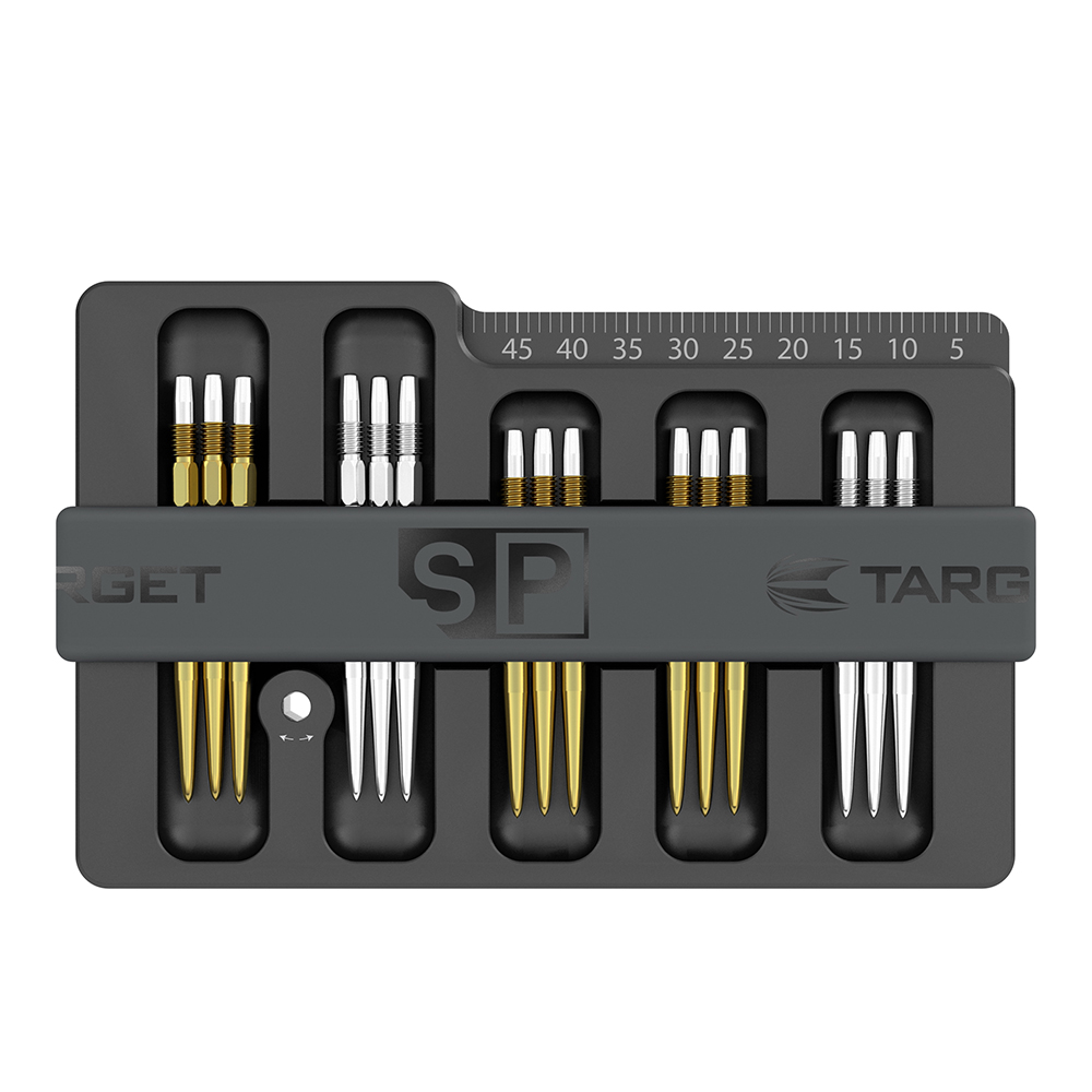 Die Swiss Point Safe Box ist schwarz eloxiert und wird mit einer Grössentabelle geliefert, die sicherstellt, dass Deine Spitzen immer die richtigen Länge haben, sowie mit einem sicheren Band, das einen weiteren Schutz Deiner Spitzen gewährleistet.