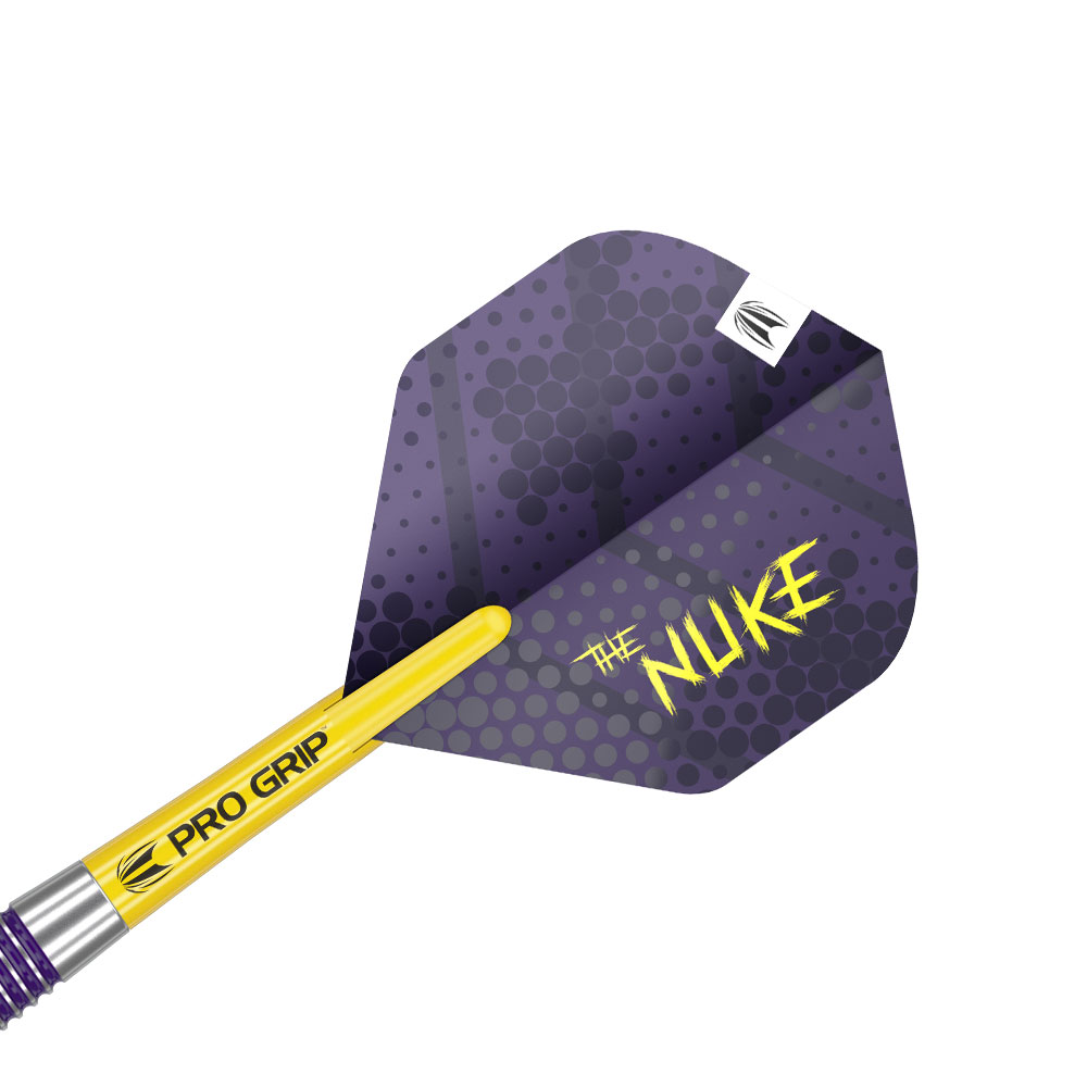 Die Luke Littler Signature Serie, die in Zusammenarbeit mit "The Nuke" entwickelt wurde. Mit Spot-UV-Druck, um den Grip zwischen Flight und Shaft zu verbessern, erhältlich in Grösse No.2