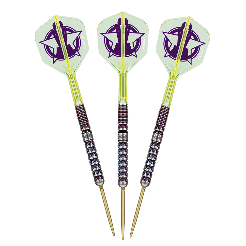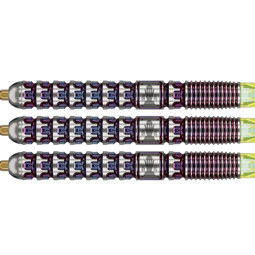 Die geraden 90% Tungsten Barrels sind mit einer Präzisionsfräsung und der Pixel Grip Technologie ausgestattet, die durch kleine, komplizierte Schnitte definiert ist, die durch einen fortschrittlichen Bearbeitungsprozess entstehen. Dieses Design optimiert die Griffigkeit der Finger und verbessert die Kontrolle und Präzision bei jedem Wurf.