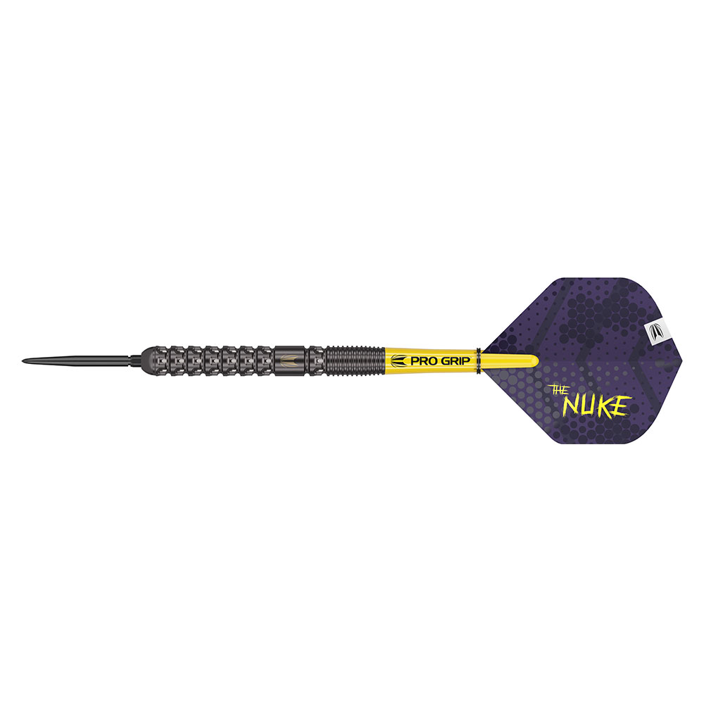 Anschliessend wird der Barrel mit einer schwarzen PVD-Performance-Beschichtung überzogen und weiter nachbearbeitet, um die Dual Pixel Tip-Technologie hervorzuheben. Vervollständigt wird die Range mit den Target Pro Grip Shafts, den "The Nuke" Signature Flights und Target Swiss Points.