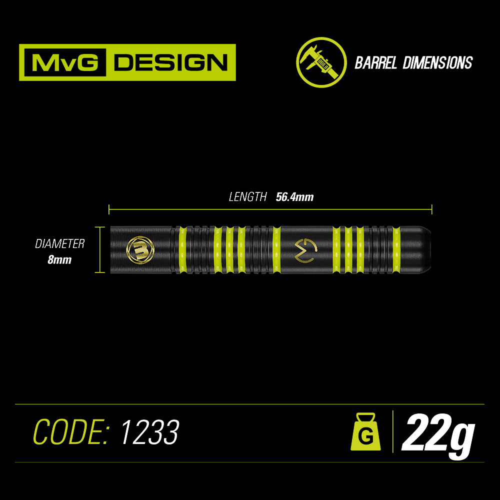 Spezifikation: Messing, Shafts: MvG Design Nylon medium, Flys: MvG Mega Standard, mit Mvg-Logo und Winmau-Logo.