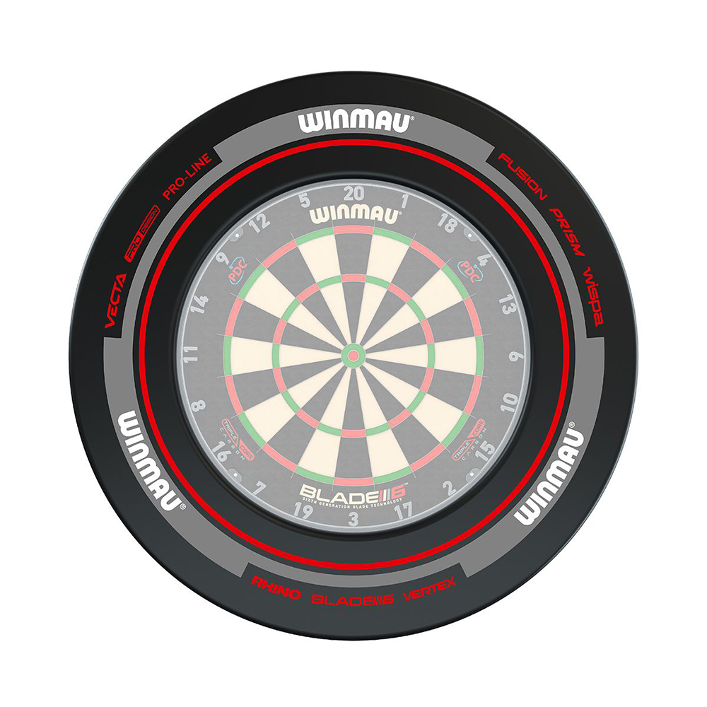 Winmau Advance Black & Red Surround – passend für alle Winmau Sisal-Dartboards und ideal für Zuhause oder Vereine. Mit einem Durchmesser von ca. 68 cm schützt der ca. 3,5 cm dicke Auffangring Wand und Boden zuverlässig, indem er ca. 12 cm rund um das Dartboard abdeckt. Die Darts bleiben sicher stecken und lassen sich leicht entnehmen. Einfach über das Board stülpen – in gewohnter Winmau-Qualität. Der einteilige Catchring ist kompatibel mit jedem herkömmlichen Winmau-Dartboard und muss einfach über das Dartboard gestülpt werden. Dartscheibe nicht im Lieferumfang enthalten.