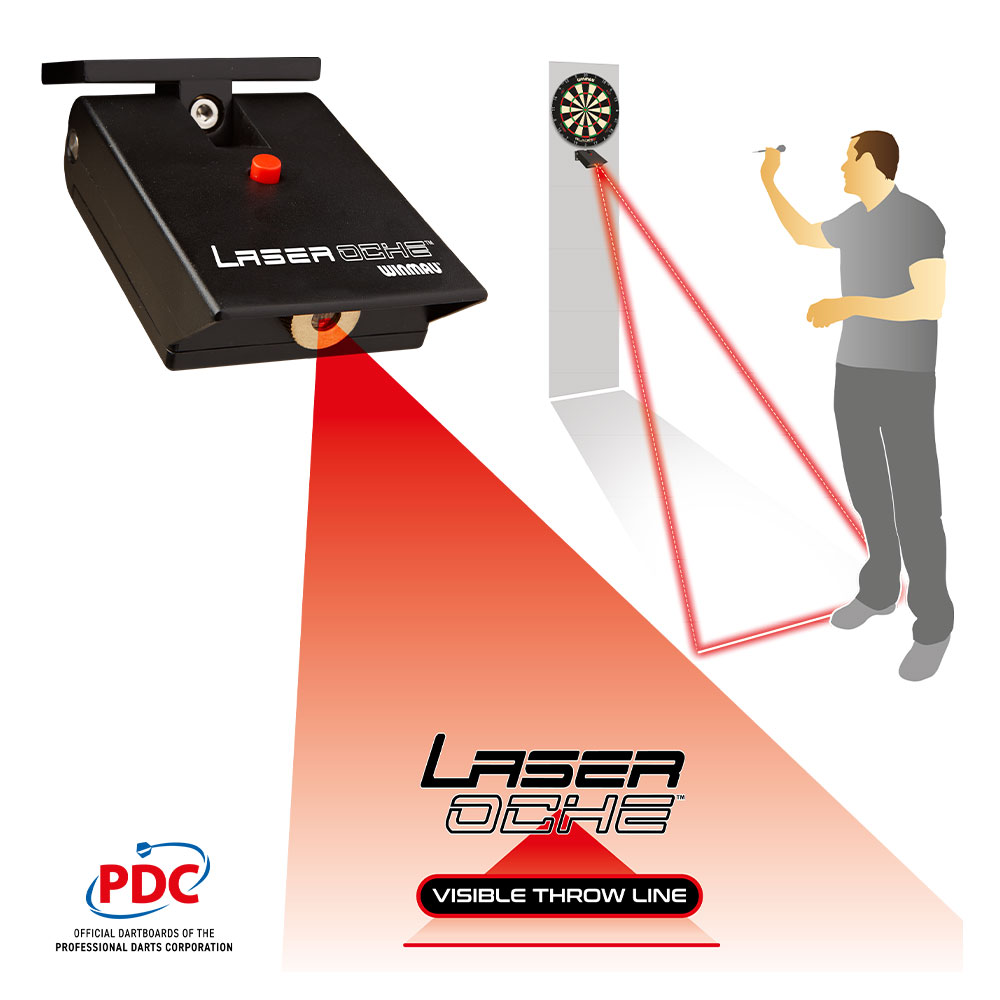 Dieses Winmau High-Tech Gerät markiert mit einem Laserstrahl die Abwurflinie. Auch bei Tageslicht oder Sonneneinstrahlung ist der Laserstrahl gut zu erkennen. Er wird ganz einfach unterhalb des Boards an der Wand oder unterhalb vom Board angebracht. Fixing-Set inklusive.
