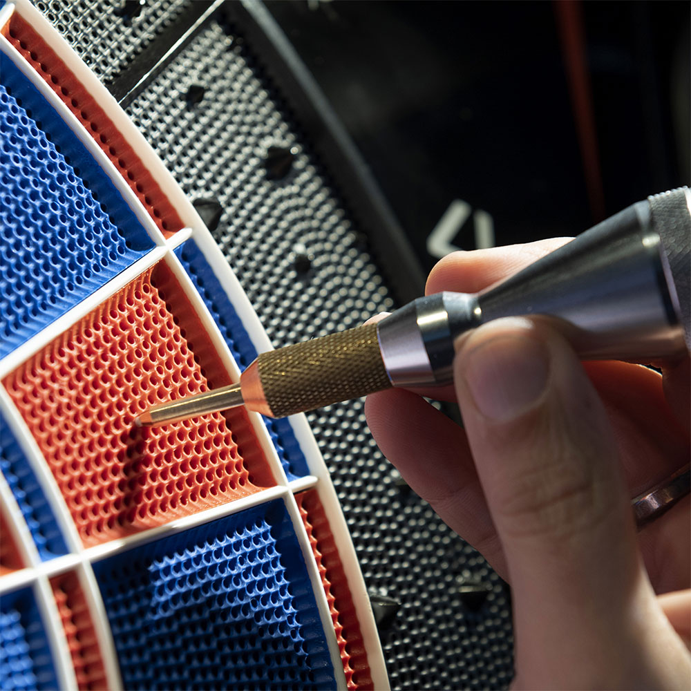 Der „Tip Remover“ oder auch einfach Spitzenausdrücker genannt, wird verwendet, um abgebrochene Softdartspitzen aus den Segmenten des Dartautomaten zu entfernen. Dabei setzt man die vordere Spitze über das Segment und drückt das Alu farbige Griffstück bis aus der aufgesetzten Messingspitze mittels Federdruck ein dünner runder Stab herauskommt, der den Spitzenrest durch das Segmentloch in das Gehäuse drückt.