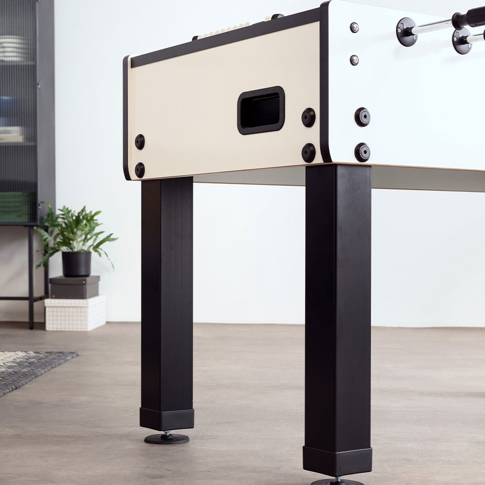 Ausgeliefert wird der Tischfussball mit 10 schwarz/weissen Winspeed Kickerbällen (⌀ 35 mm). Der Korpus ist bereits vormontiert – einfach und schnelle Montage.
