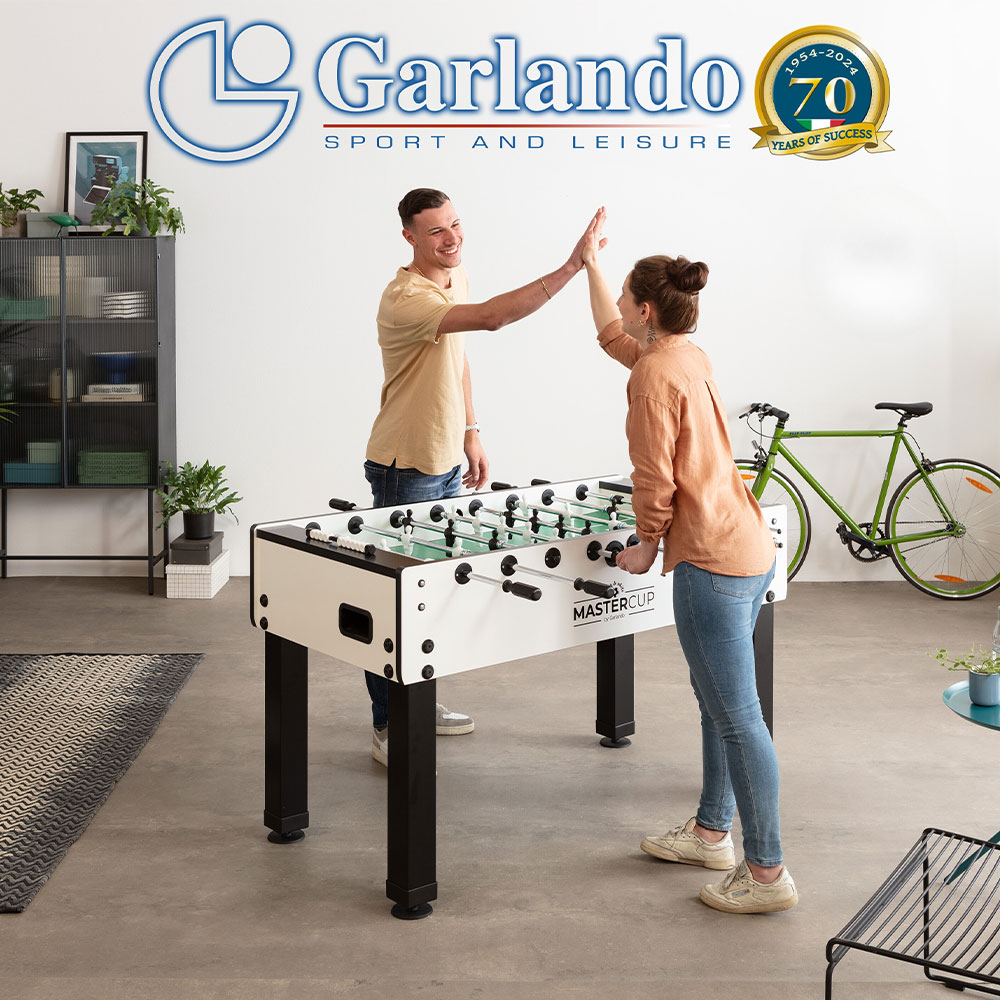 Das Modell Black & White, hergestellt von Garlando, Made in Italy. Garlando ist offizieller Partner des Weltverbandes ITSF und gehört mit über 70 Jahren Erfahrung zum weltweit führenden Produzenten professioneller Fussballkicker. Nationale sowie internationale Meisterschaften werden auf Kickertischen von Garlando ausgetragen.