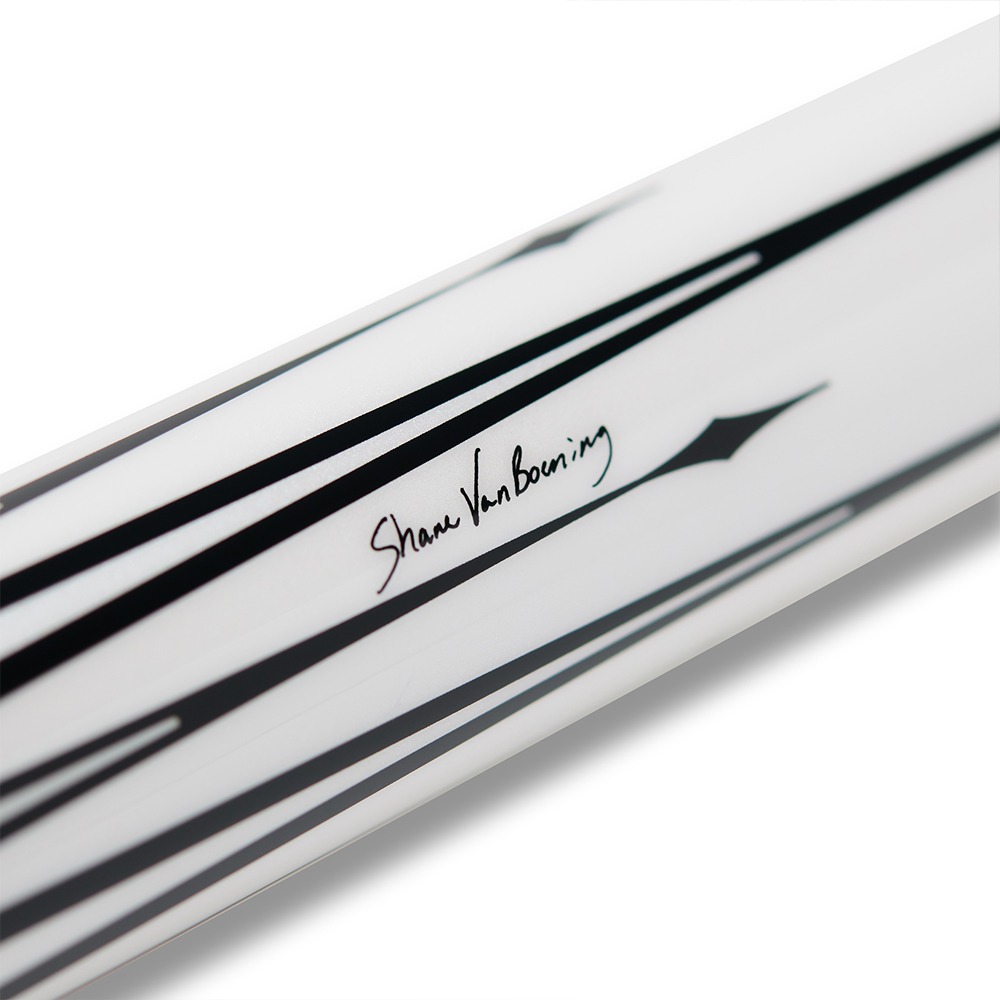 Von Grund auf neu konzipiert und verfeinert – die zweite Generation der Cynergy SVB Series Cues ist da. Entwickelt unter der direkten Anleitung des Hall-of-Famers Shane van Boening, bieten diese Queues eine Performance, die ihr atemberaubendes Design noch übertrifft. Wichtige Updates der Serie umfassen ein neu positioniertes A-Joint, eine Clear-Tec® Epoxidharz-Beschichtung sowie ein hochwertiges, genarbtes Vollledergriffband, das nahtlos bis zur Butt-Cap verläuft. Präzise geschnittene Ringe mit echten Abalone-Einlagen betonen das verkürzte Zehn-Punkt-Kronendesign – eine würdige Hommage an den unangefochtenen König des amerikanischen Poolbillards.
