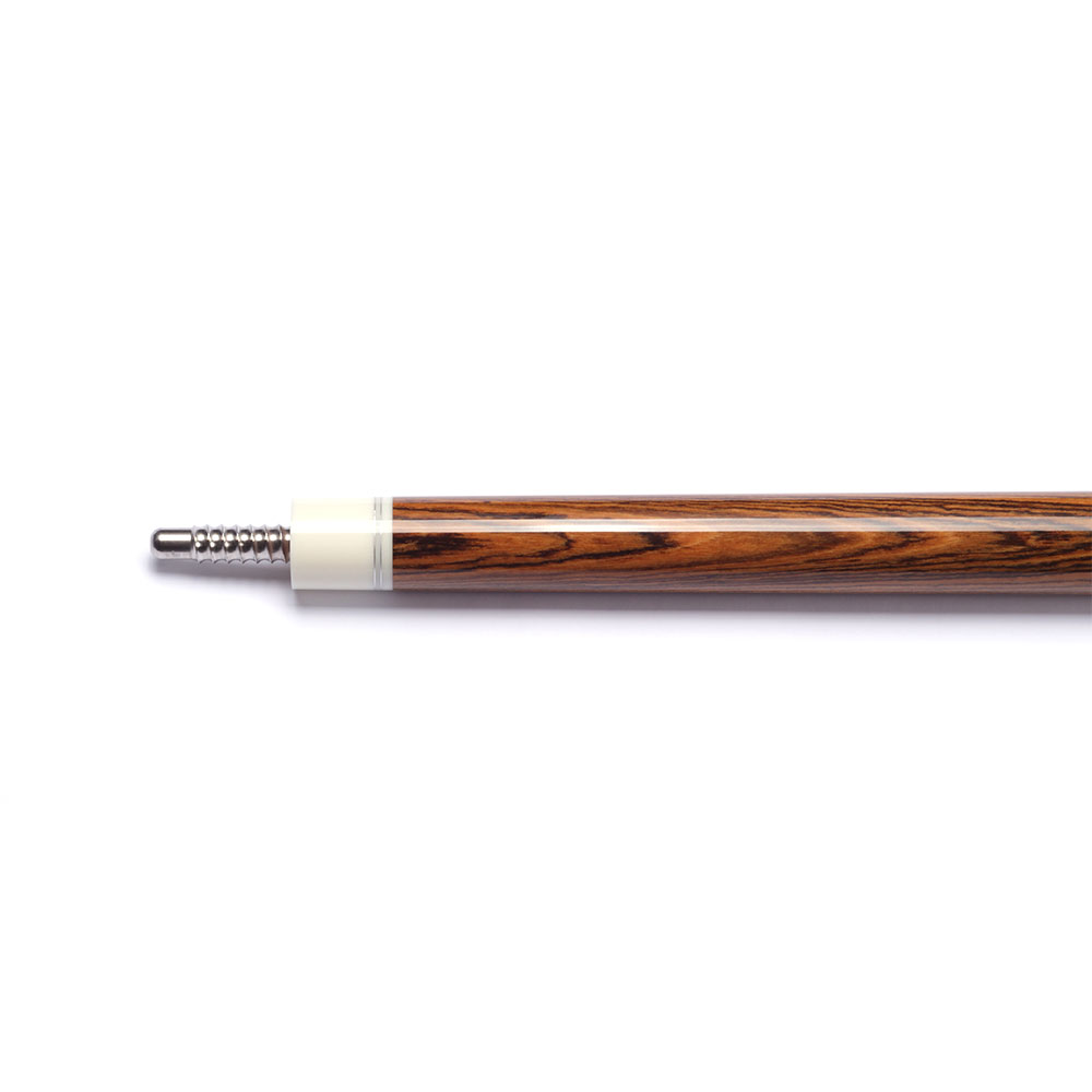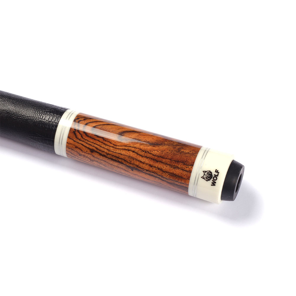 Das Wolf Queue mit Carbon Oberteil ist eine Kombination aus traditioneller Eleganz und modernster Technologie. Der Schaft ist aus hochwertigem Carbon gefertigt. Er bietet hohe Stabilität und Präzision bei jedem Stoss. Das Unterteil aus echtem Bocote Holz, akzentuiert durch doppelte Silberringe, sorgt für eine harmonische Balance zwischen Innovation und klassischem Design. Die nach vorne verlagerte Gewichtsverteilung des Queues verbessert das Handling und ermöglicht eine feinfühlige Kontrolle über die Stossführung, insbesondere bei Effet-Stössen. Ein Radial Pin verbindet Ober- und Unterteil nahtlos, was die Stossübertragung optimiert. Abgerundet wird das Set durch eine passende Echtholzverlängerung, die eine schnelle Längenanpassung des Queues ermöglicht. Das Wolf Queue mit Carbon Oberteil ist die perfekte Wahl für Spielerinnen und Spieler, die Wert auf Präzision, Stil und innovative Materialien legen.